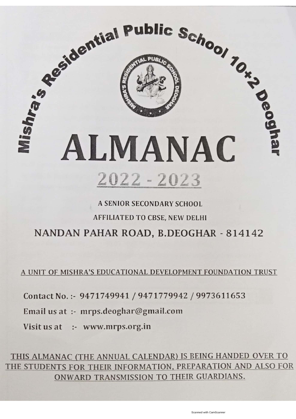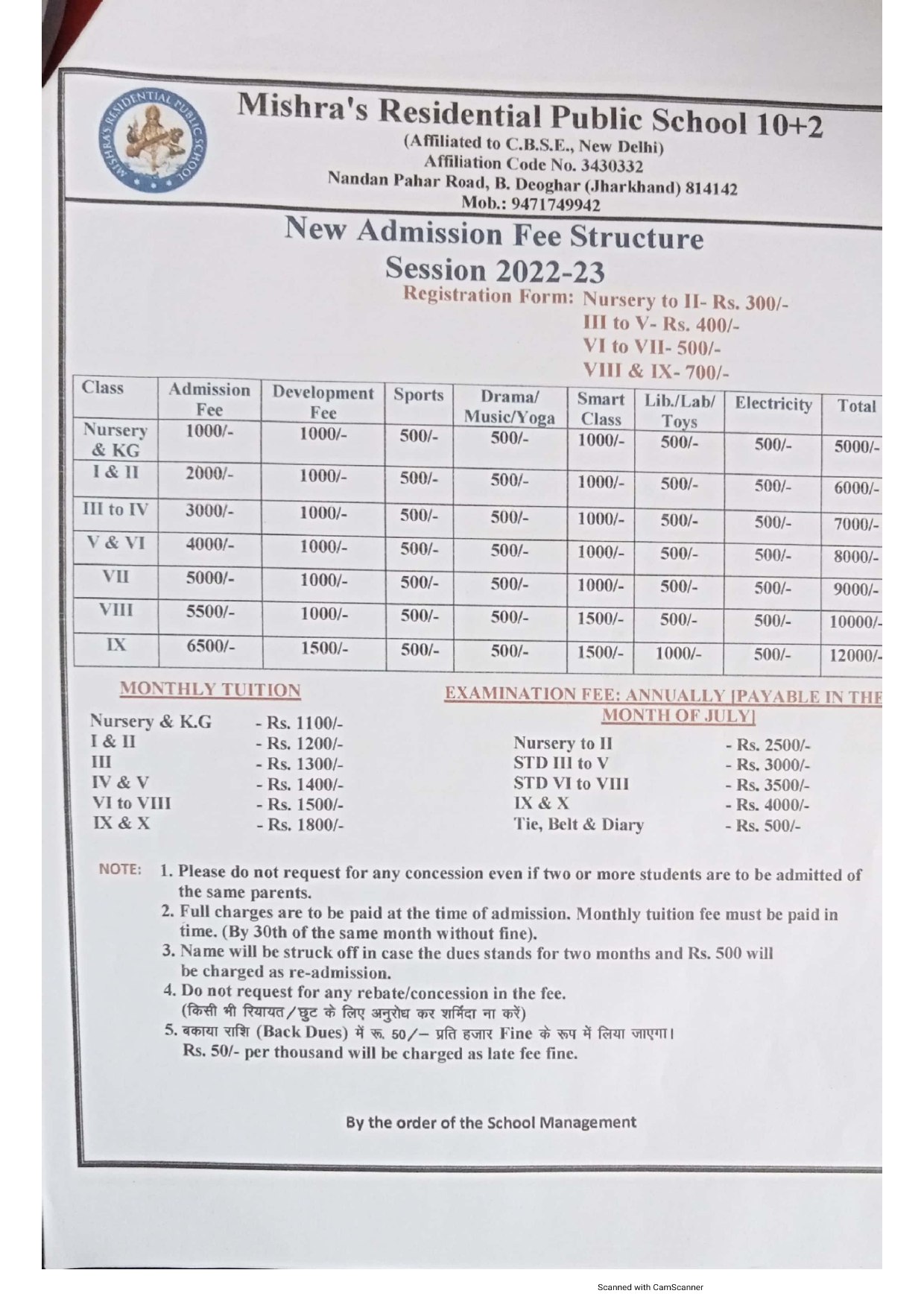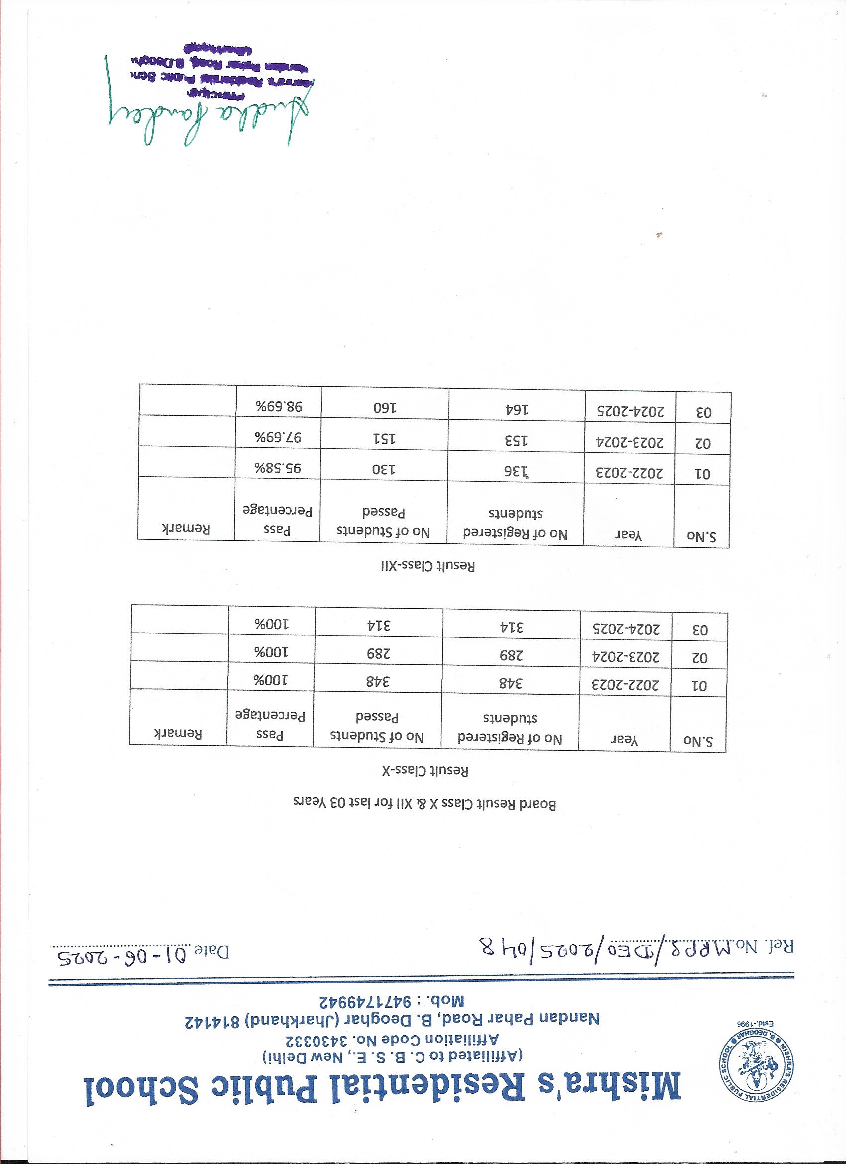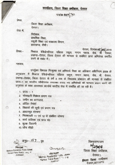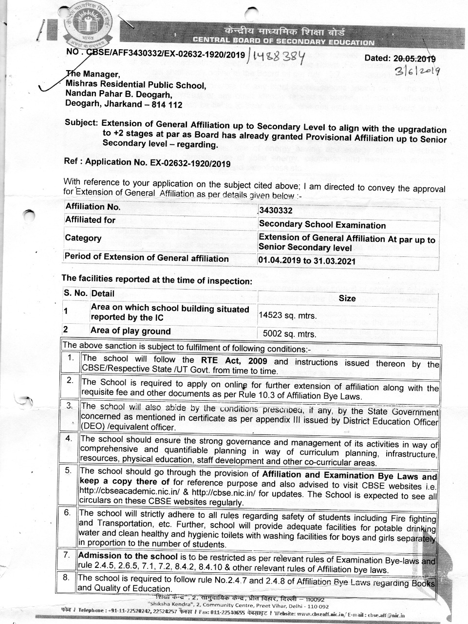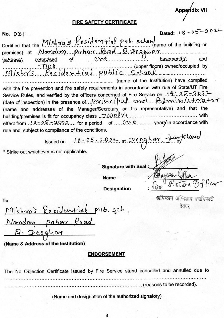 CBSE Certificate Of Mishra's Residential Public School, 10+2