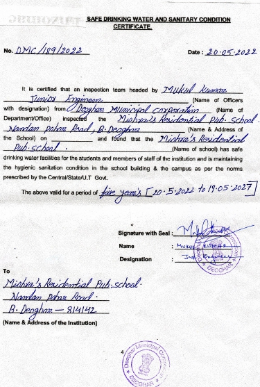 WATER,HEALTH& SANITATION CERTIFICATE